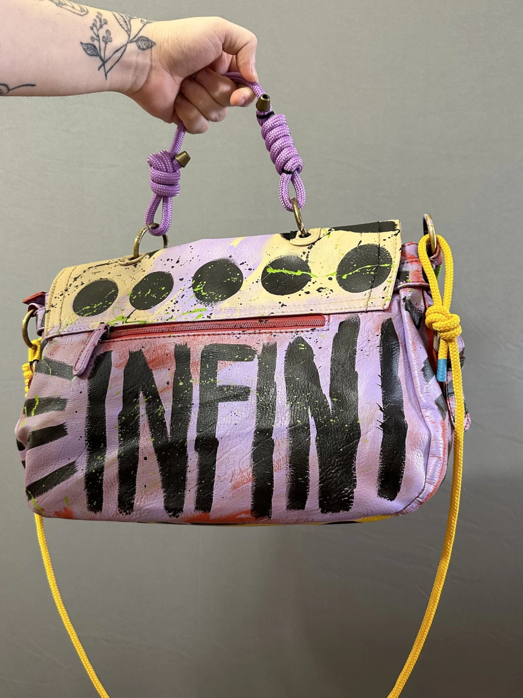 Cada bolsa do Infini é uma peça única, garimpada com muito cuidado e transformada com pintura específica para o material de cada uma garantindo durabilidade, estilo e identidade. São bolsas com história, qualidade incrível e acabamento feito à mão, pensadas para quem valoriza exclusividade de verdade.